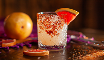- Garnish with a grapefruit wedge